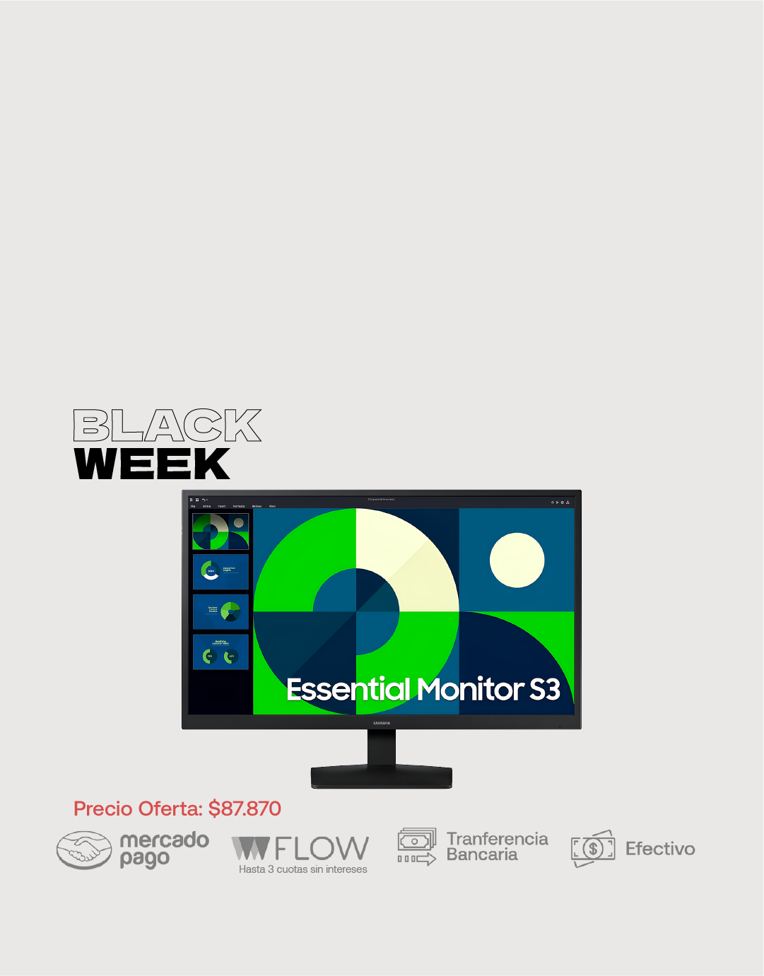 SamsungMonitor Samsung Essential S3 27in Full HD Panel IPS 75hz 5ms HDMI VGA AMD FreeSync Flicker Free