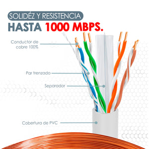 Experimenta una transferencia de datos ultrarrápida gracias a su diseño de categoría 5E que garantiza velocidades de 1000 megabit para una conectividad eficiente en tu red.
