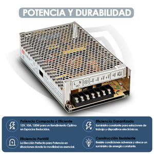 Fuente de Poder WEHO 120 Watts 12 Voltios 10 Amperes Metalica Estabilidad y Rendimiento
