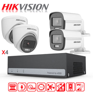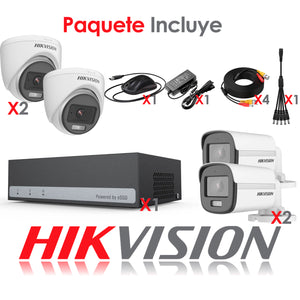 Kit de Camaras de Seguridad + DVR 4 Canales Color Vu Hikvision eSSD 300 GB FHD 2 Camaras Bala 2 Domo