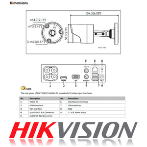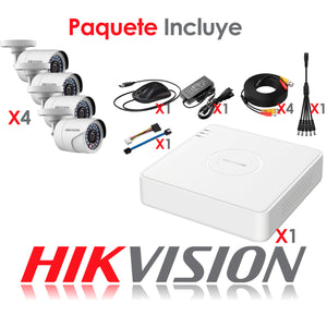 Kit de Camaras de Seguridad + DVR 4 Canales Hikvision Turbo HD 4 Camaras Bala IP66 1 MP