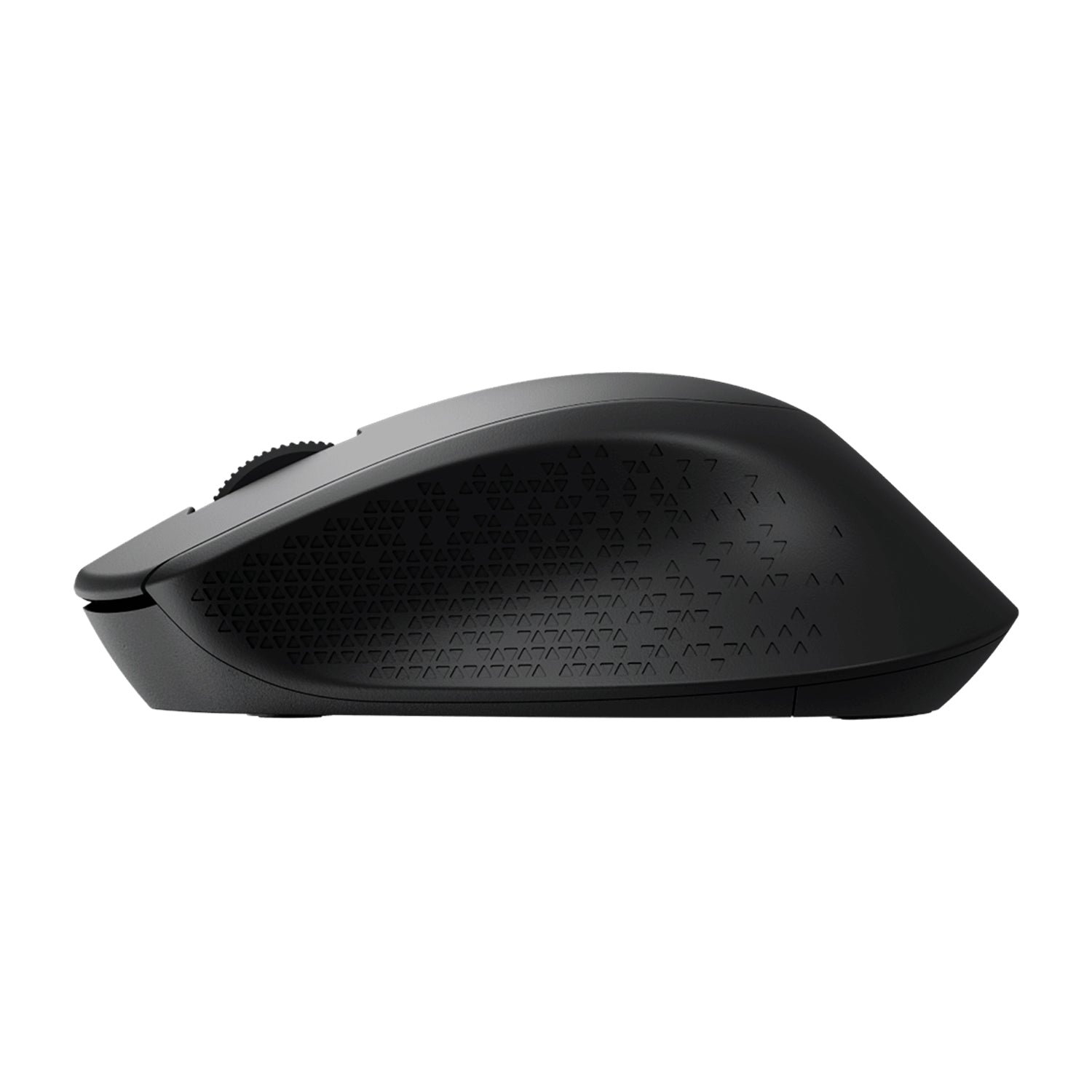 El mouse contorneado para la mano derecha te permite trabajar confortablemente todo el día, con un recubrimiento de goma curvado que se adapta con naturalidad a tu mano.