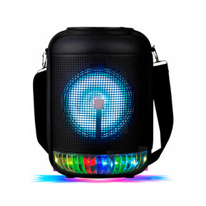 Este parlante cuenta con reproductor MP3, radio FM, entrada para micrófono y ranura para tarjeta MicroSD, brindando múltiples opciones para reproducir tu música favorita. Su función de karaoke te permite cantar y animar cualquier evento, convirtiendo cada reunión en un espectáculo.