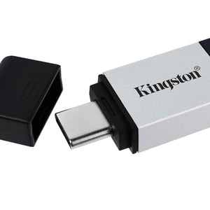 DataTraveler 80 de Kingston es una unidad Flash USB de alto rendimiento compatible con equipos de sobremesa, portátiles, teléfonos inteligentes y tabletas Tipo C sin necesidad de adaptador.