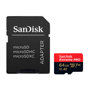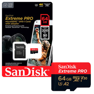 Tarjeta de Memoria MicroSDXC 64GB SanDisk Extreme Pro C10 UHS-I A2 V30 U3 4K 200MB/s + Adaptador