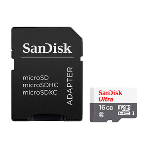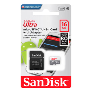 Tarjeta de Memoria MicroSDHC SanDisk 16GB Ultra Clase 10 UHS-I 80MB/s + Adaptador Multiuso